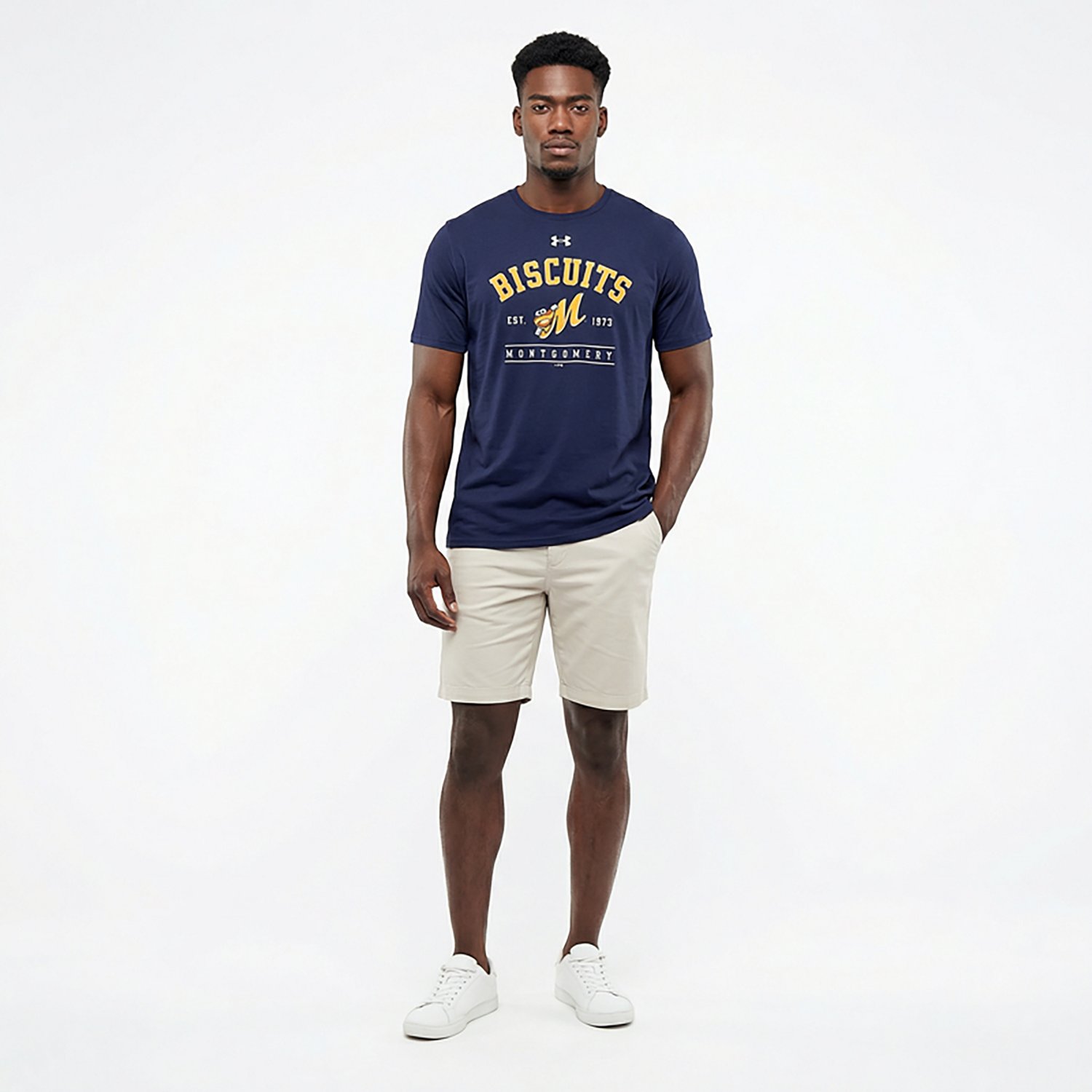 Show your support when you wear the Under Armour Men's Biscuits Batter Up Performance T-shirt. The cotton and polyester construction provides a blend of comfort and durability, while the screen-printed team graphic on the chest displays your fandom.