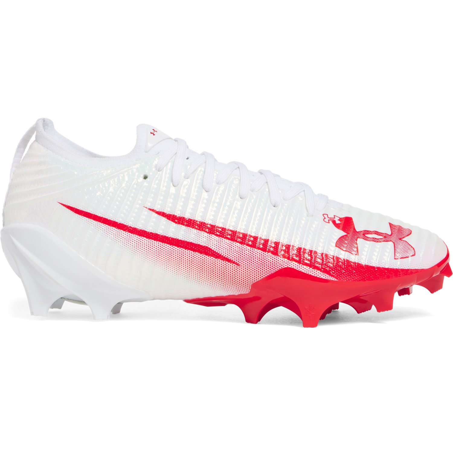 Unleash your full potential on the field with the Under Armour Men's Blur Pro Football Cleats. Their full UA IntelliKnit upper is breathable, light and comfortable with stretch and support where you need it. The ultra-thin TPU skin offers lightweight protection, and their knit collar provides a sock-like fit and added comfort. The secure heel pocket adds comfort.