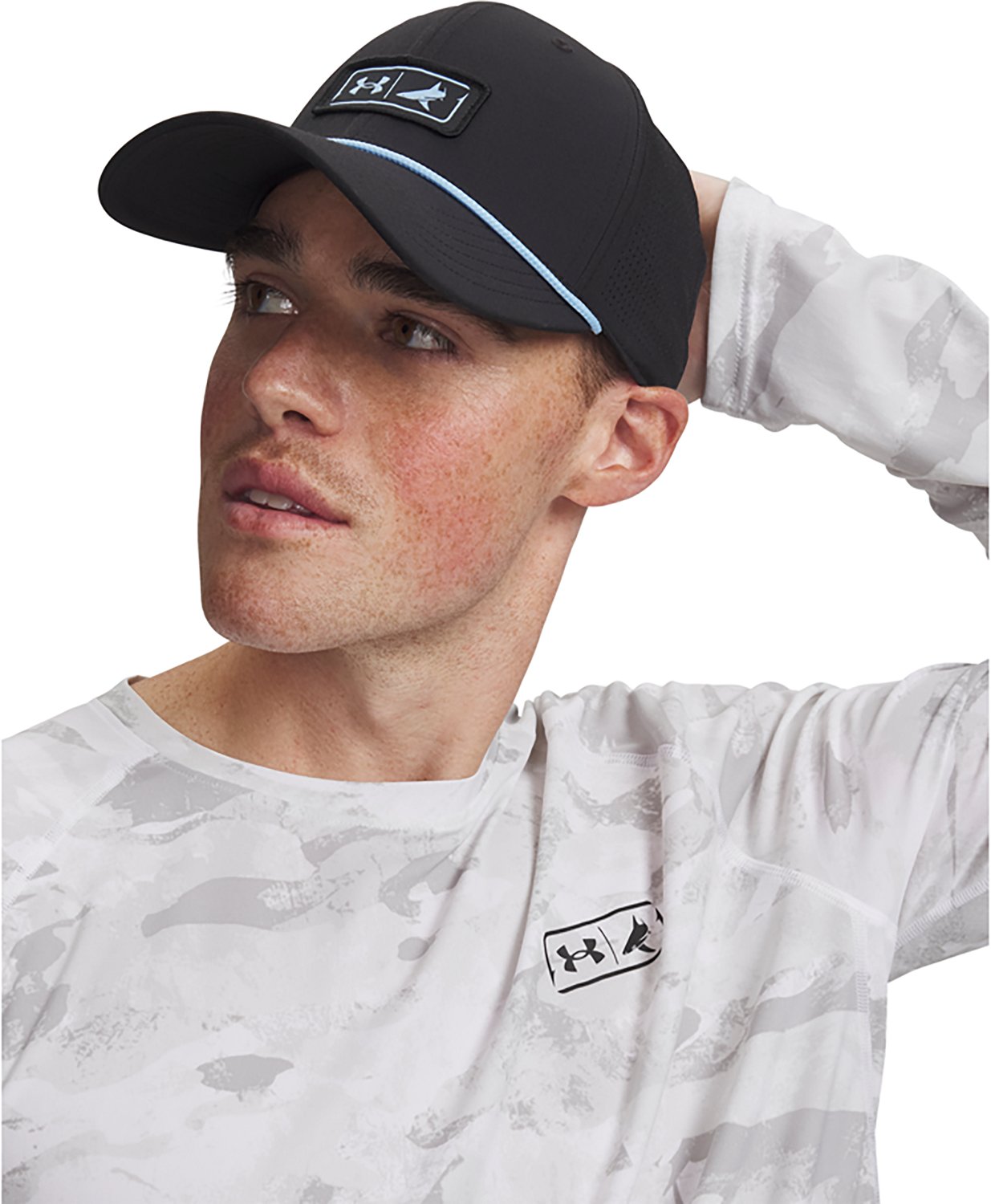 Look your best when you wear the Under Armour Men's BTH X FISH MID TRK Hat. It is made of 100% polyester. The square mid-crown with a structured front panel creates a modern fit, and its trucker mesh side and back panels deliver added ventilation. The front patch logo adds a unique touch.