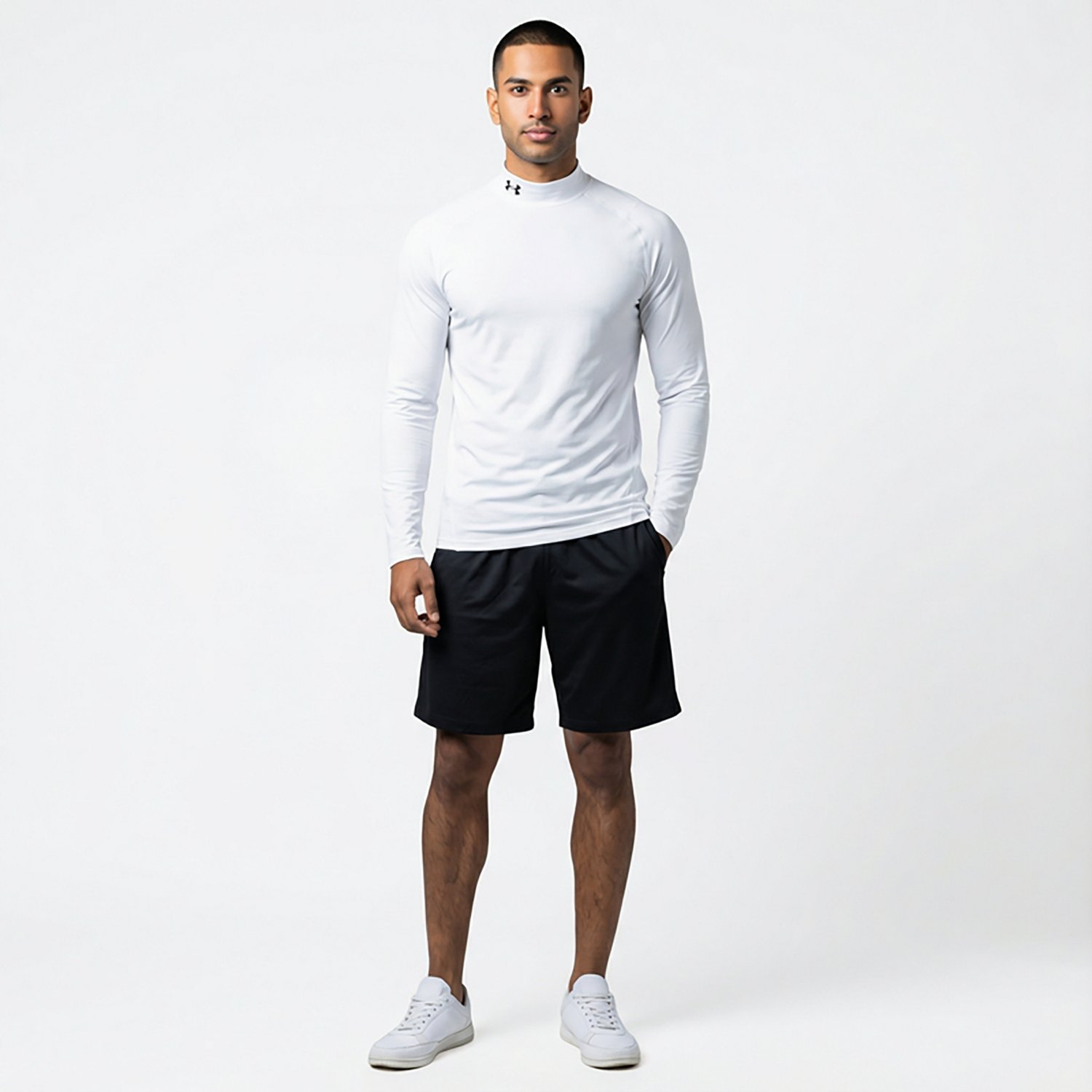Stay comfy on the move when you wear the Under Armour Men's CG Armour Fitted Mock Long Sleeve Top. The polyester and elastane dual-layer fabric with a brushed interior offers a soft, warm feel and the 4-way stretch, ergonomic construction encourages a natural fit. The sweat wicking and quick drying material helps keep you dry and comfortable, while the stretch-mesh back and underarm panels provide cooling ventilation.
