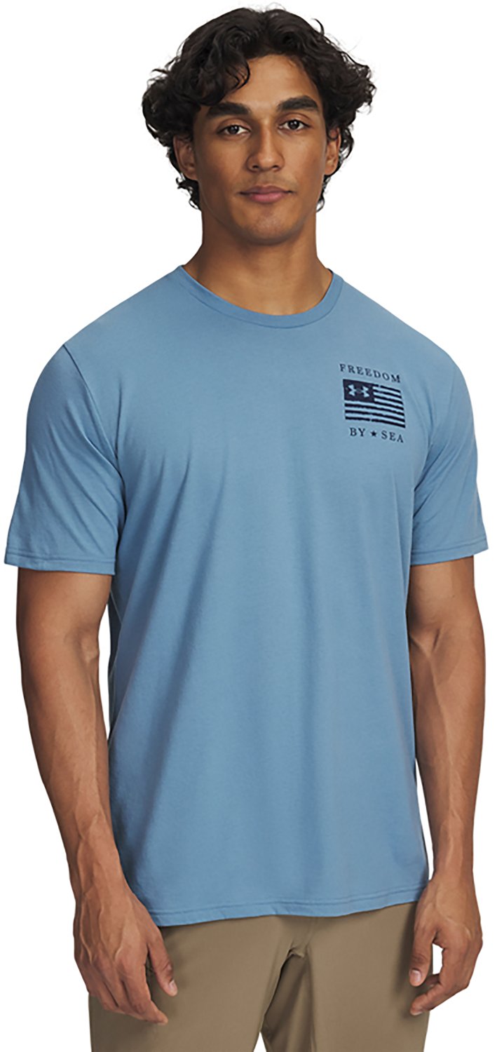 Be free with the Under Armour Men's Freedom by Sea Graphic T-shirt. The cotton and polyester material provides a comfortable feel, while the graphic design offers a stylish look.