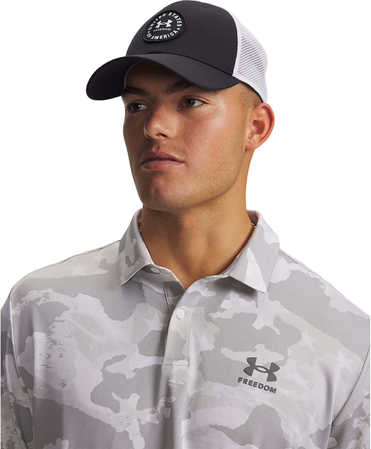 Take care of business with the Under Armour Men's Freedom Mid Trucker Cap. The polyester material provides a comfortable feel, while the odor control technology helps reduce odor. The adjustable snapback closure offers a custom fit, and the Trucker mesh side and back panels promote breathability.