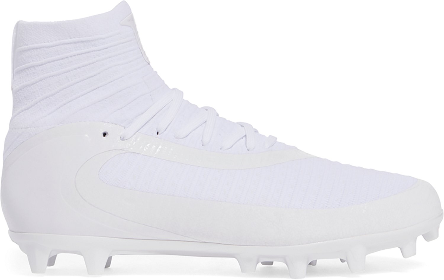 Move powerfully on the gridiron with the Under Armour Men's Highlight MC 2.0 Football Cleats. These lightweight cleats combine softness with durability for a comfortable and lasting fit. The knit uppers are stretchy and breathable and combine with foam insoles and compression collars for a comfortable feel. The scatter traction cleat plate allows you to push off with each step so you can put power behind your movement in every direction.