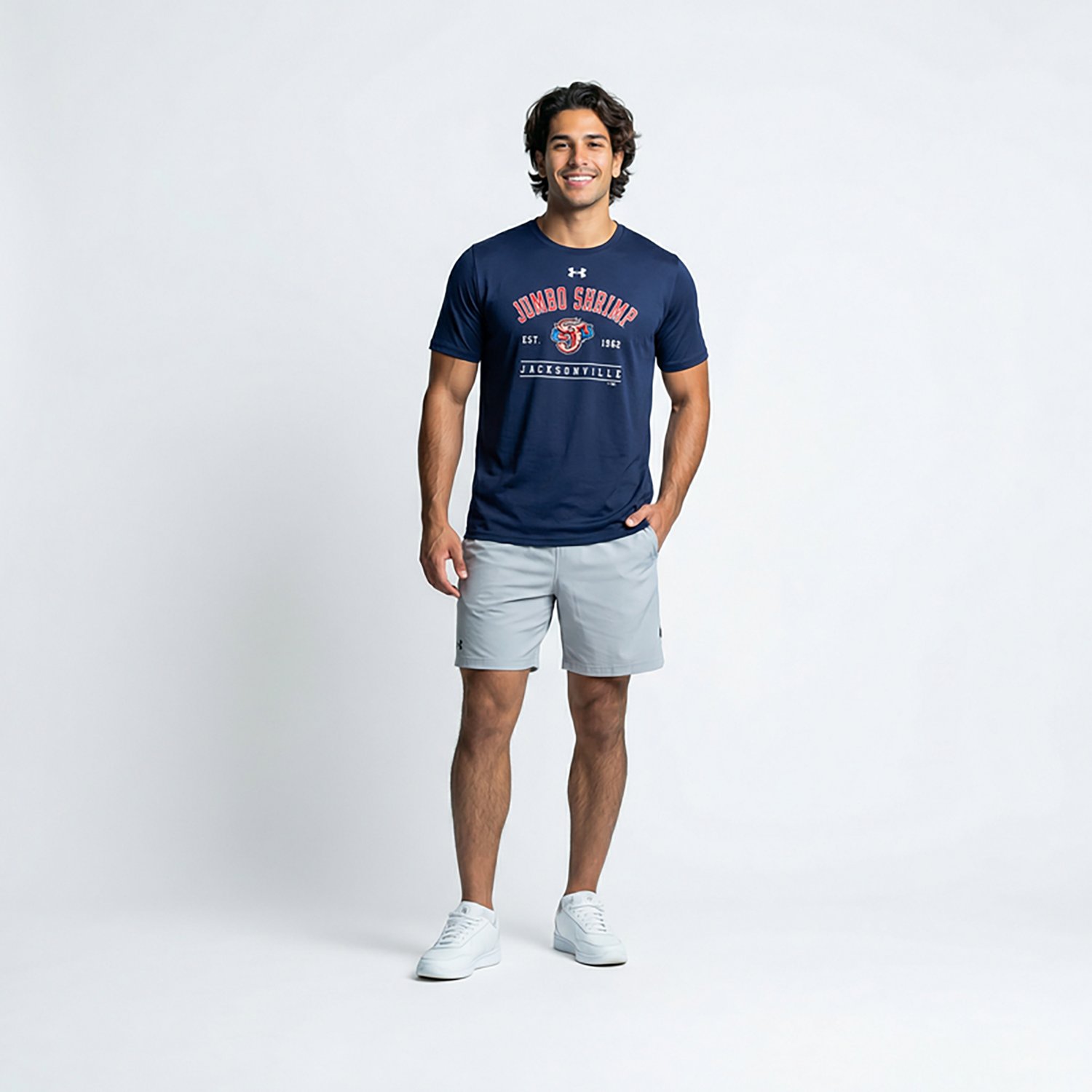 Show your support when you wear the Under Armour Men's Jumbo Shrimp Batter Up Performance T-shirt. The cotton and polyester construction provides a blend of comfort and durability, while the screen-printed team graphic on the chest displays your fandom.
