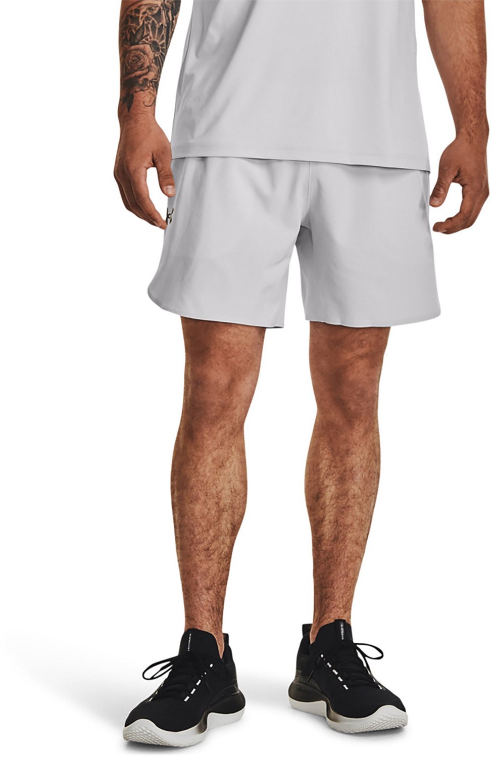 Wear the Under Armour Men's Peak Woven Shorts 6 in for any workout. Made of 100% polyester stretch-woven fabric for durability and easy movement, these shorts come with mesh ventilation for breathability. The exposed elastic waistband with integrated drawstring allows for a secure fit.