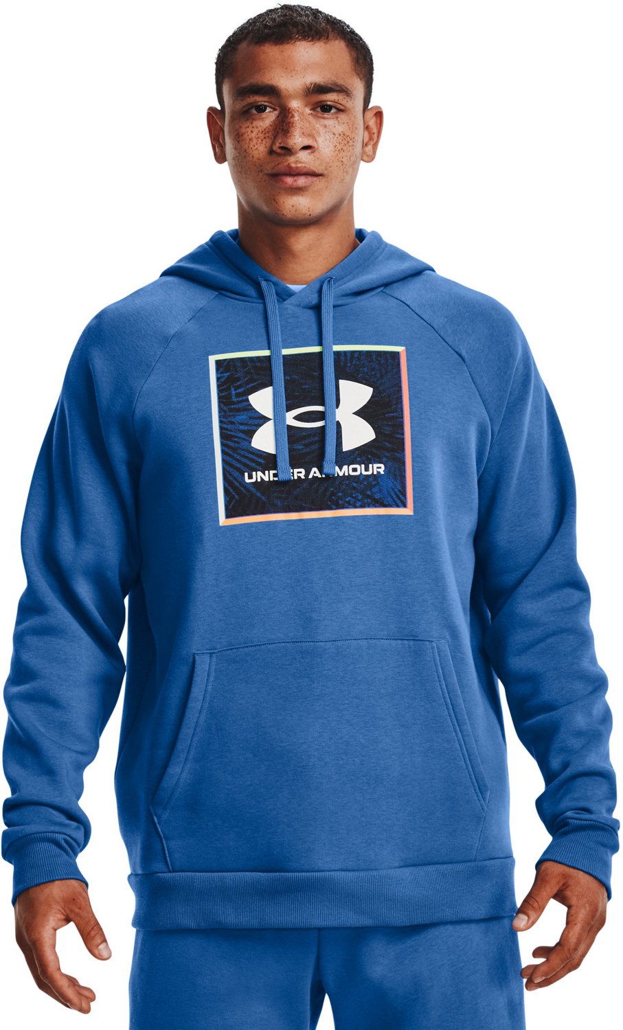 Start your day in style by wearing the Under Armour Men's Rival Fleece Graphic Pullover Hoodie. The cotton and polyester blend provides comfort throughout the day, and the graphic design offers an eye-catching appearance. The moisture-wicking technology prevents accumulation of sweat and excess moisture, and the quick-drying fabric prevents chafing.