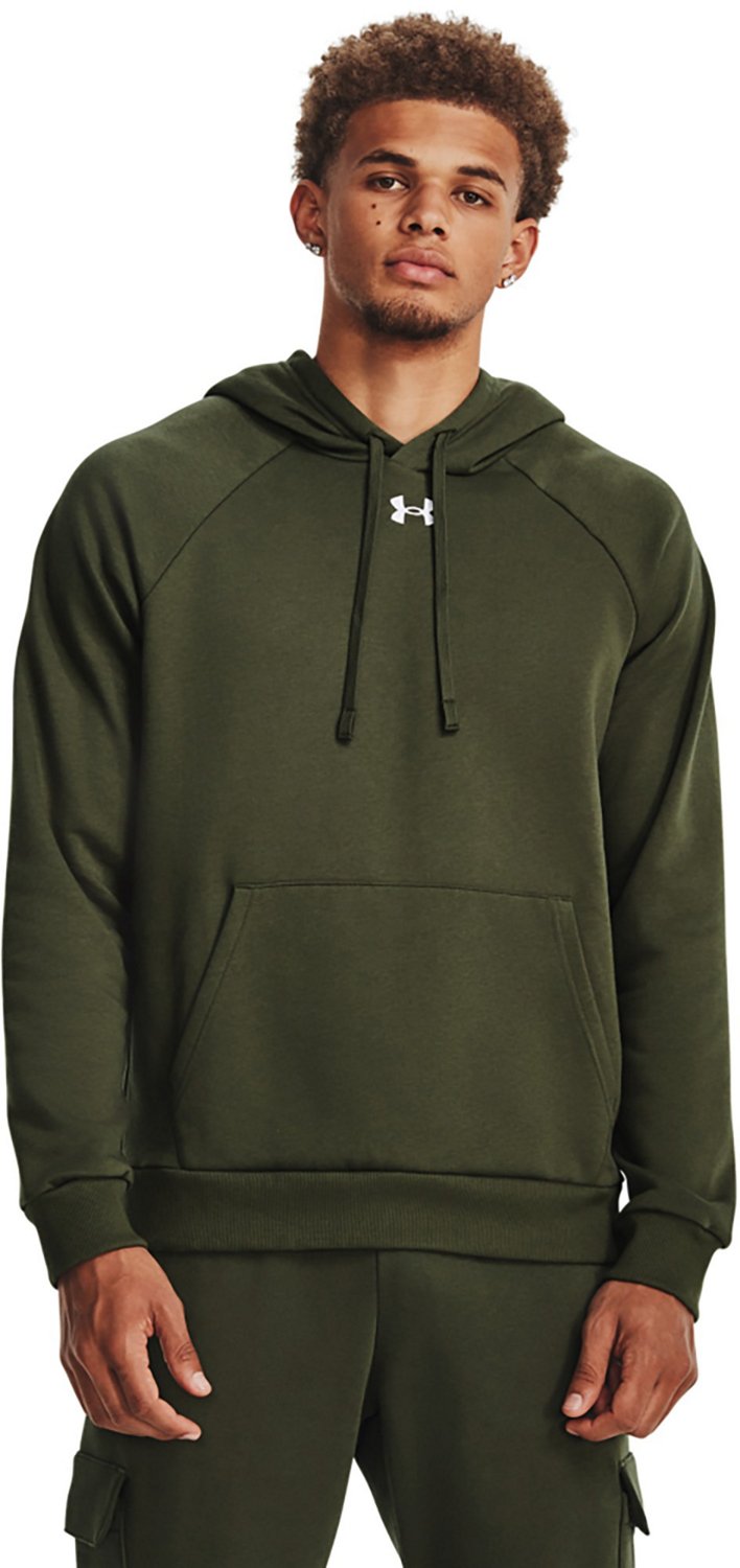 Layer up against the chill with the Under Armour Men's Rival Fleece Hoodie. Brushed fleece fabric feels soft and warm against your skin. The kangaroo pocket keeps hands cozy, while the ribbed cuffs and hem provide a snug fit and elevated look.