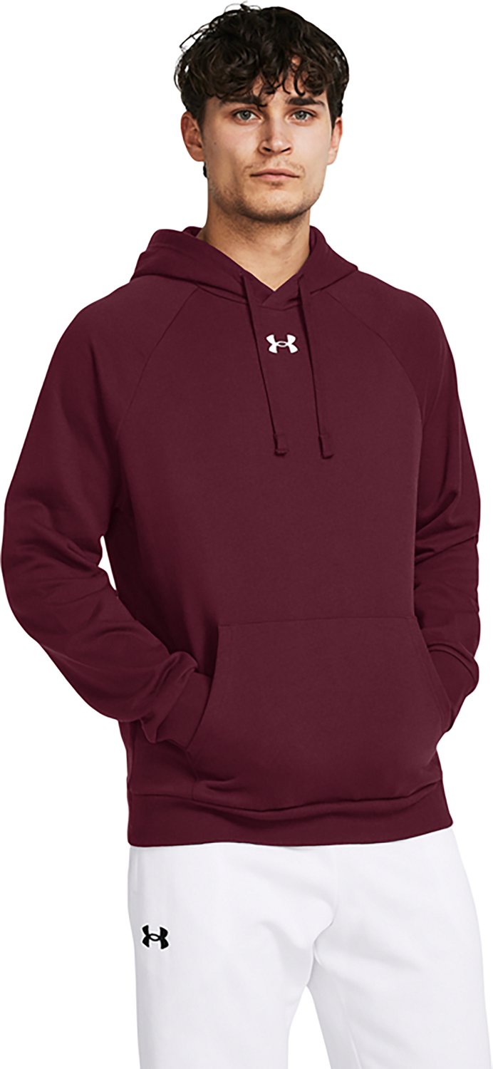 Layer up against the chill with the Under Armour Men's Rival Fleece Hoodie. Brushed fleece fabric feels soft and warm against your skin. The kangaroo pocket keeps hands cozy, while the ribbed cuffs and hem provide a snug fit and elevated look.