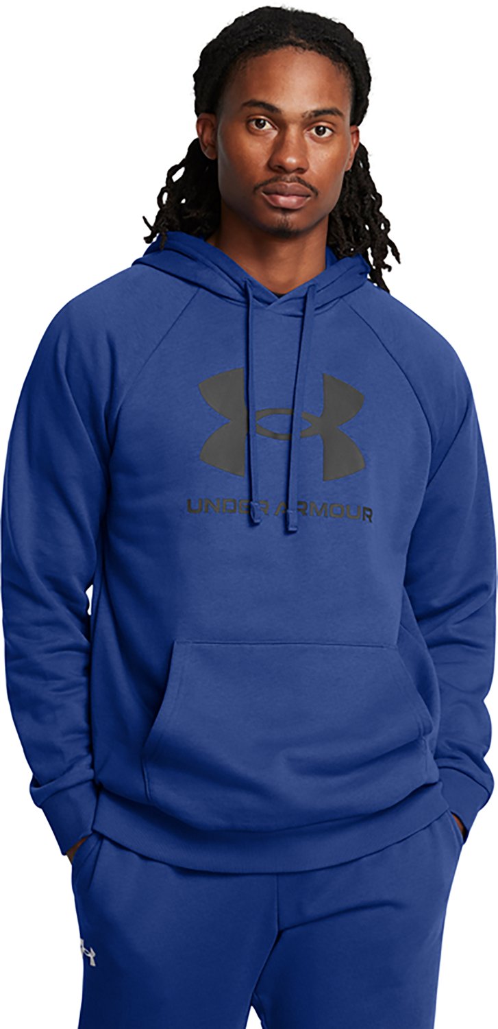 Layer up against the chill with the Under Armour Men's Rival Fleece Logo Hoodie. Brushed fleece fabric feels soft and warm against your skin. The kangaroo pocket keeps hands cozy, while the ribbed cuffs and hem provide a snug fit and elevated look.