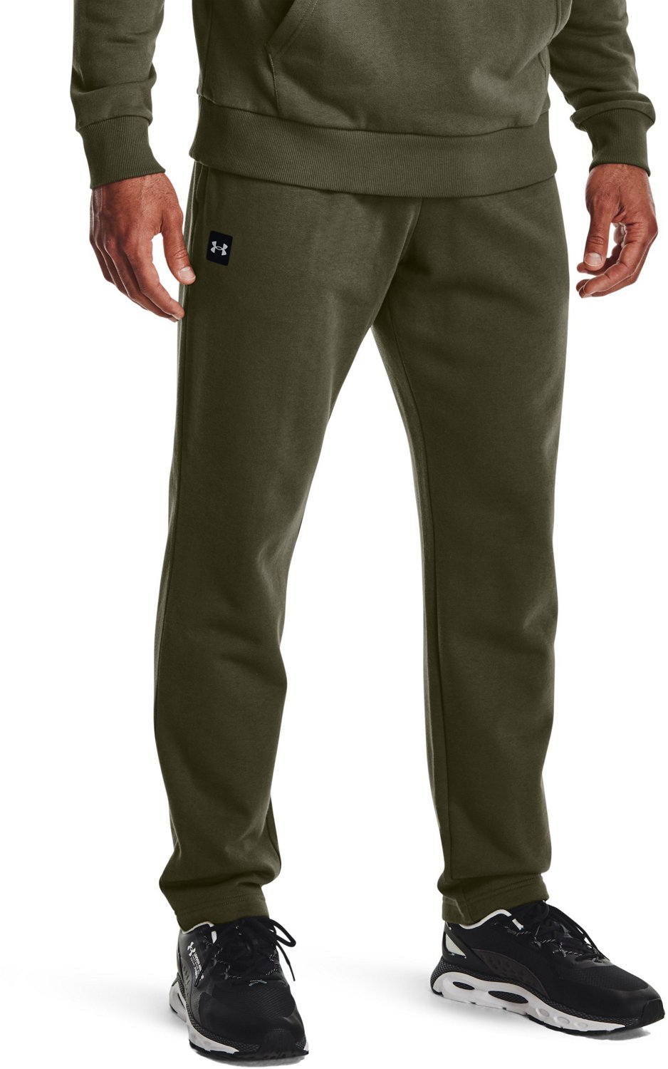 Beat the chill as you warm up in the Under Armour Men's Rival Fleece Pants. The cotton and polyester fleece blend construction delivers an ultrasoft, cozy feel and is complemented with a brushed inner fabric for warmth and comfort. The encased elastic waistband ensures a comfortable and secure fit, while the open hand pockets keep your workout essentials close and easy to access.