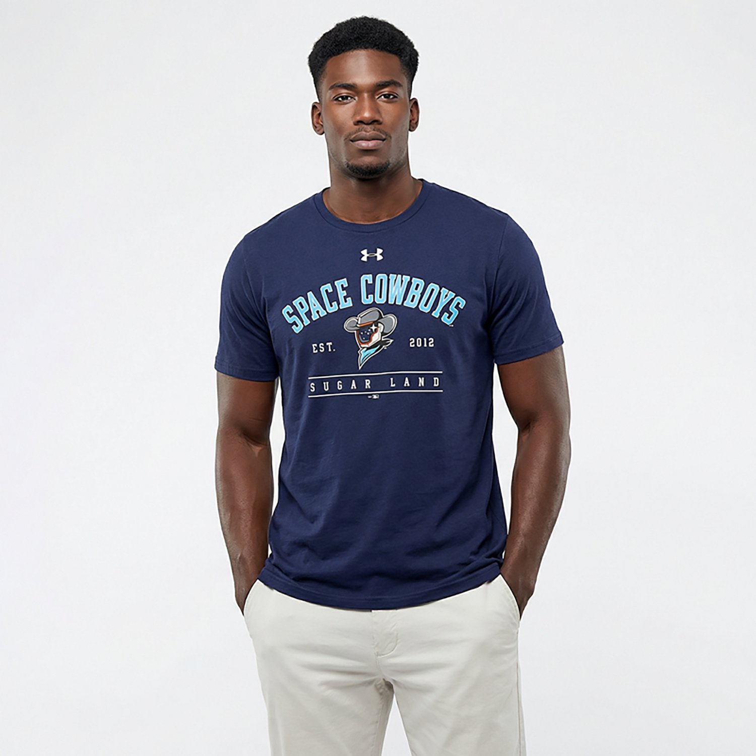 Show your support when you wear the Under Armour Men's Space Cowboys Knuckleball Performance T-shirt. The cotton and polyester construction provides a blend of comfort and durability, while the screen-printed team graphic on the chest displays your fandom.