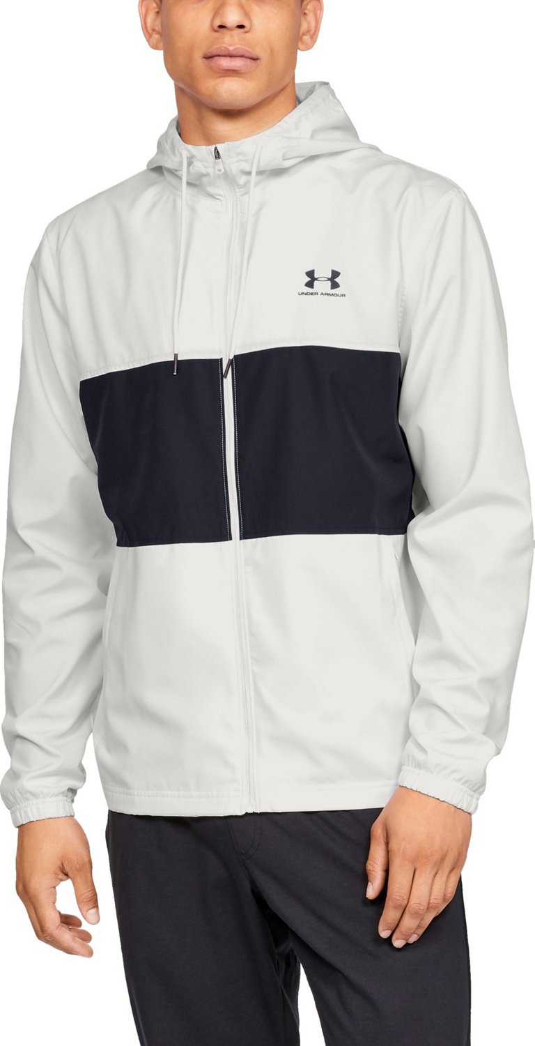 Zip into the Under Armour Men's Sportstyle Wind Jacket to stay comfortable in windy conditions. This jacket is made from 100% polyester fabric and features a mesh lining for ample breathability when you're on the go. The jacket is also designed with an adjustable drawstring hood and a full-zip closure for complete coverage.