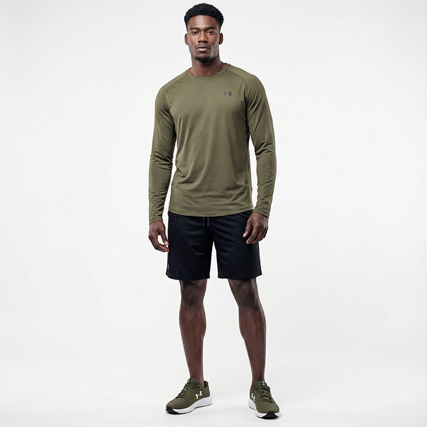 Work out in resilient clothing with the Under Armour Men's Tech 6" Men's Shorts. The polyester material provides durability, and the mesh fabric allows for proper airflow. The open hand pockets are a place to keep items, and you can use the elastic waistband with an external drawstring to set the right fit.