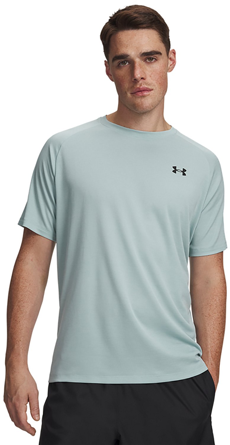 Take on the day in style in the Under Armour Men's Tech Textured T-shirt. The moisture wicking technology keeps you cool and dry, and the polyester fabric feels soft and comfy. The UA Techâ„¢ fabric dries quick for a natural feel.