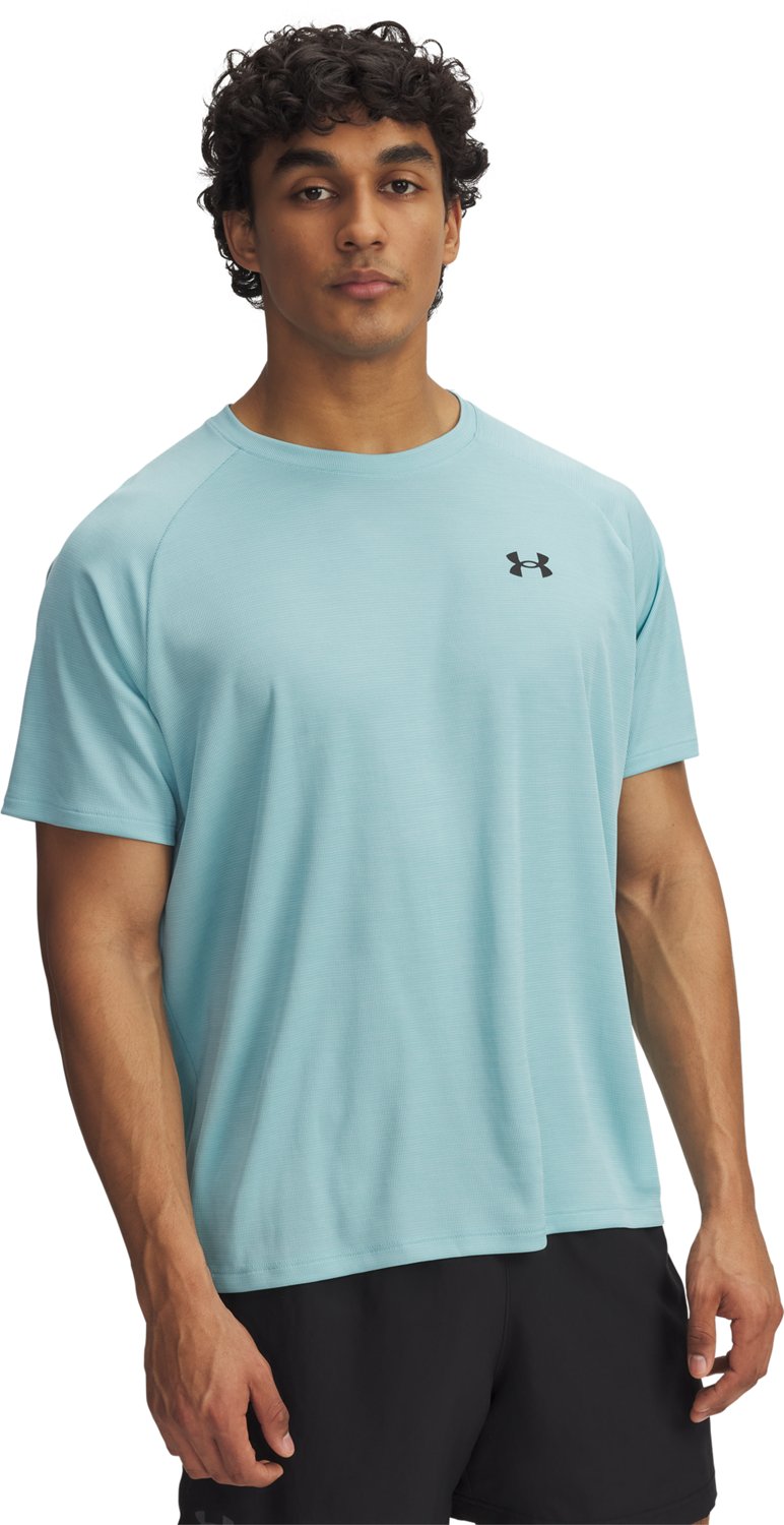 Take on the day in style in the Under Armour Men's Tech Textured T-shirt. The moisture wicking technology keeps you cool and dry, and the polyester fabric feels soft and comfy. The UA Techâ„¢ fabric dries quick for a natural feel.