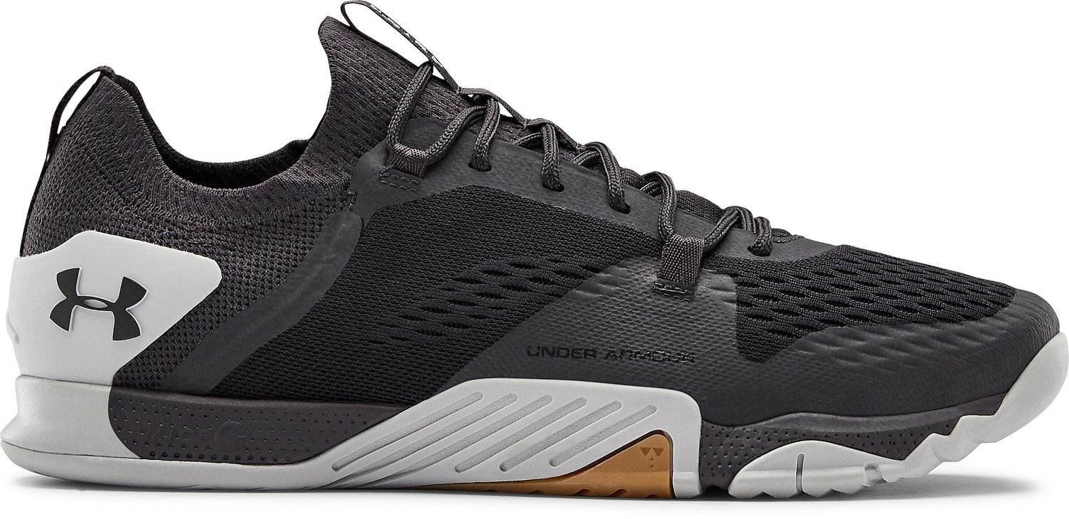 Take on your next workout when you wear the Under Armour Men's TriBase Reign 2.0 Training Shoes. These training shoes boast full-length Micro G® foam midsoles and full-rubber outsoles for traction and cushioning, and the strategic rubber under the toe boxes grips the gym floor for ample stability. The large external heel counters and high collars deliver a locked-in feel.