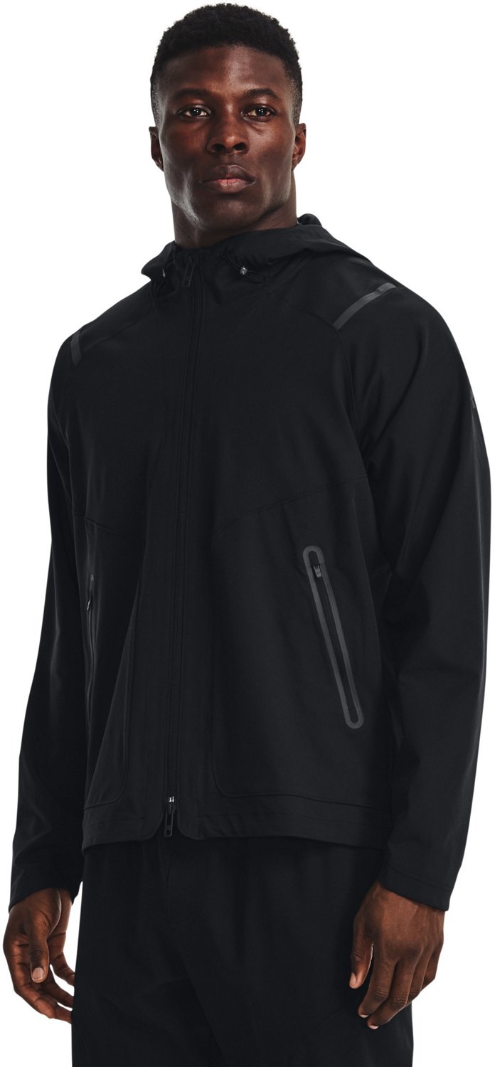 Inclement weather won't stop you when wear an Under Armour Men's Unstoppable Jacket. The stretch weave fabric allows free movement in all directions and repels water using UA Storm technology. Bungee closures and a shaped hem enhance coverage when you need extra protection.