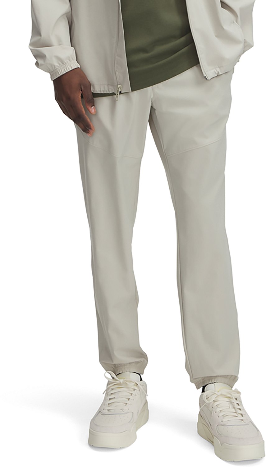 Stay comfortable in the Under Armour Men's Vibe Woven Joggers. The joggers are made of 87% polyester and 13% elastane 4-way stretch material to offer comfort that is great for athletic activity. Its UA Storm technology repels water without sacrificing breathability, while the encased elastic waistband has an external drawstring for adjustments.