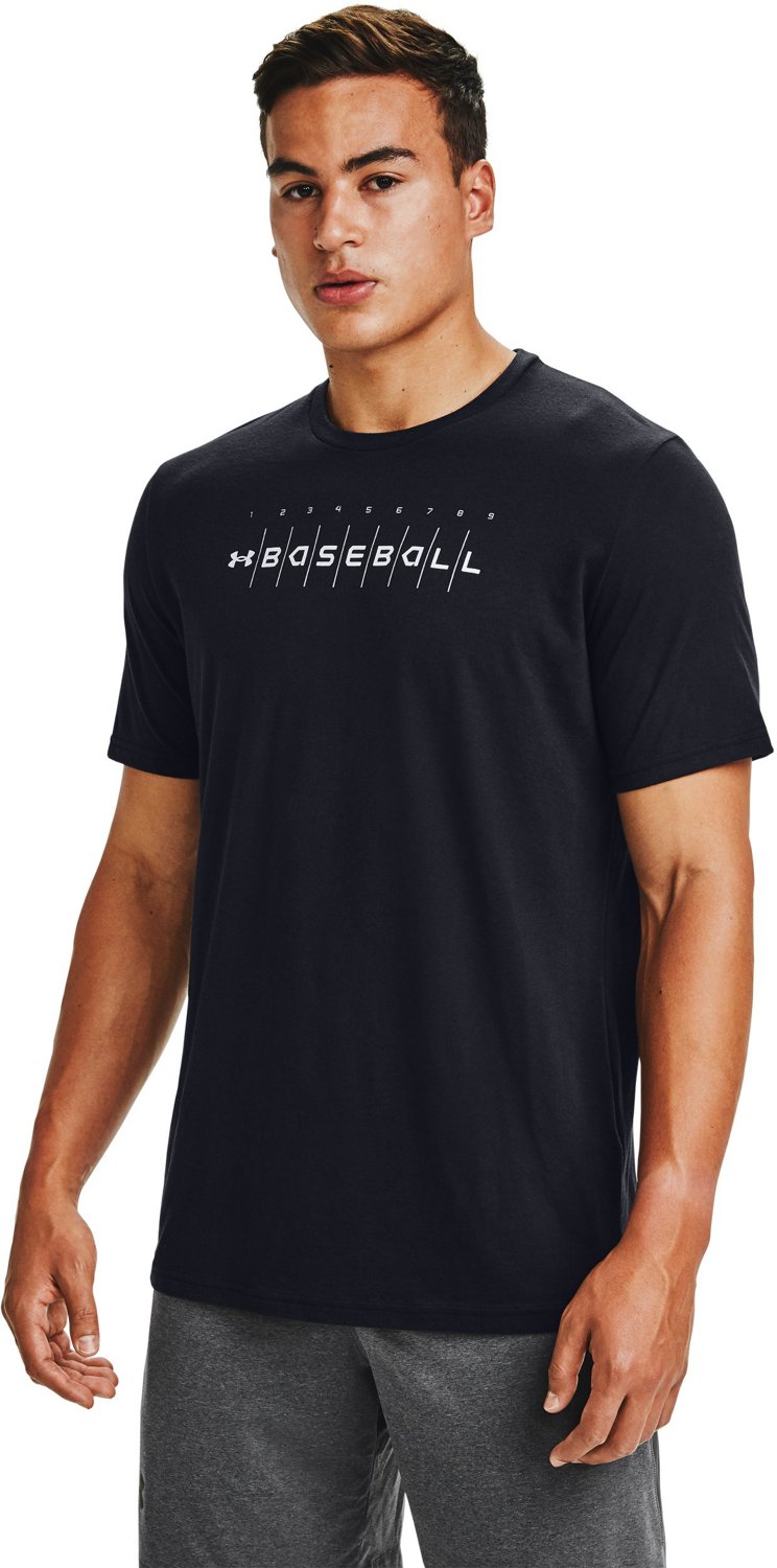 Head to batting practice wearing the Under Armour Men's Wordmark Baseball T-shirt. Made of a super-soft cotton blend for lasting comfort, this T-shirt sports a branded baseball graphic across the chest that lets everyone know you came to play.