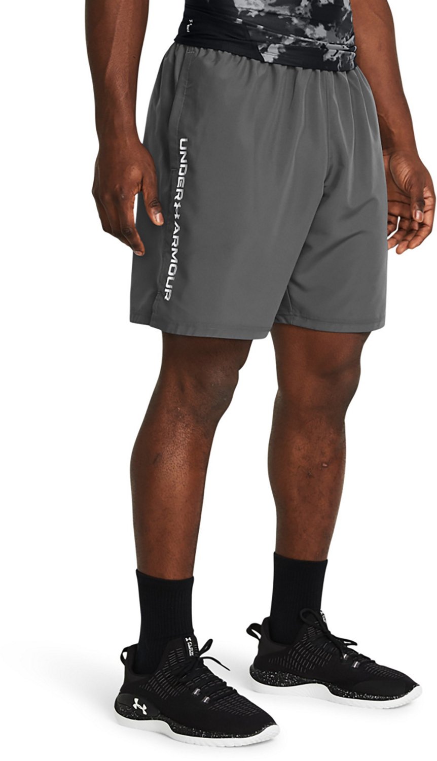 Exercise like a pro in the Under Armour Men's Woven Wordmark Shorts 8.25 in. The polyester fabric offers a soft feel, and the encased elastic waistband with an internal drawstring allows you to tighten or loosen the fit with ease. The moisture wicking technology makes sure you stay dry and cool, and the wordmark detail highlights an eye-catching appearance.