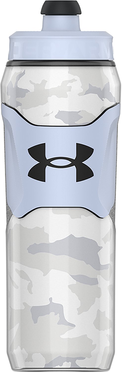 Stay hydrated on the go with the Under Armour Playmaker Squeeze Insulated 2 Camo 28 oz. Water Bottle. Its lightweight, durable squeeze design offers fast, convenient hydration. The triple-wall insulation helps keep liquids colder for longer, and its bite and pull quick shot nozzle is leak-resistant. The non-slip side grip allows for a comfortable and secure hold.