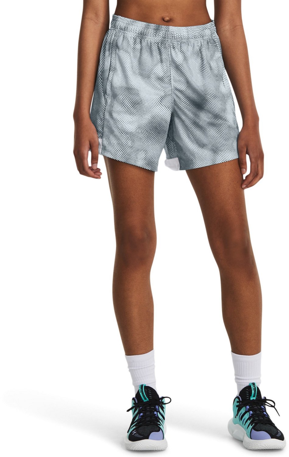 Stay comfortable on the court in the Under Armour Women's Baseline Lino Shorts 6 in. These basketball shorts feature textured knit fabric for a soft, breathable feel and have two 2 hand pockets. The material is sweat wicking and quick drying to help you recover faster and make that next layup. Drawstring waistband.