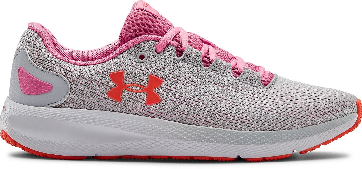 Look good on your runs in the Under Armour Women's Charged Pursuit 2 Running Shoes. The tire patterned outsoles present superior traction, and the mesh uppers allow for air flow. The Charged Cushioning® midsoles absorb shock as you walk, and the sock liners give additional cushioning at heel strike.