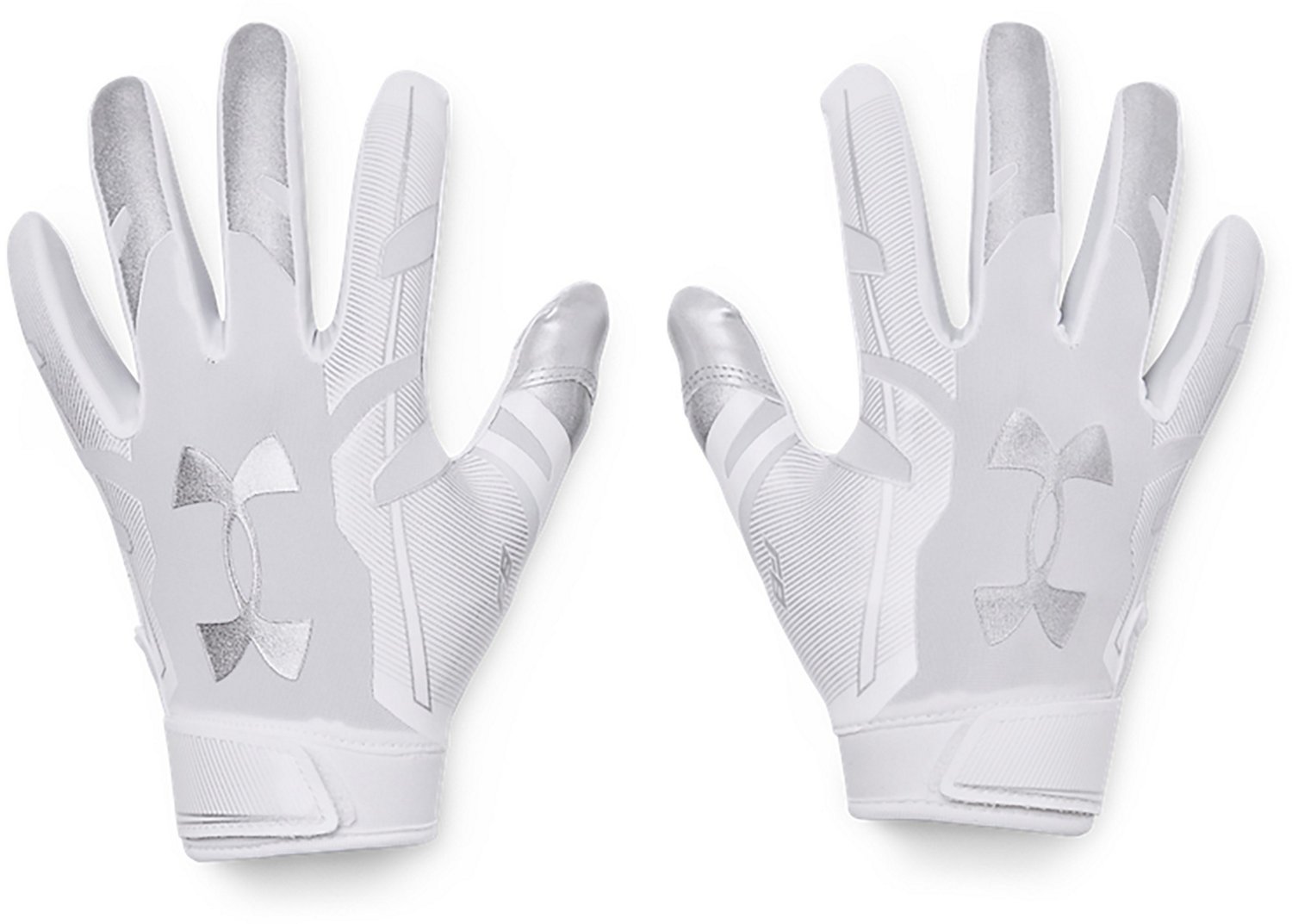 Sport the Under Armour Women's F8 Football Gloves for comfort during play. These gloves are made of 85% silicone, 12% polyester and 3% elastane for comfort and have Under Armour GlueGrip for gripping power. The adjustable closures allow for a secure fit.