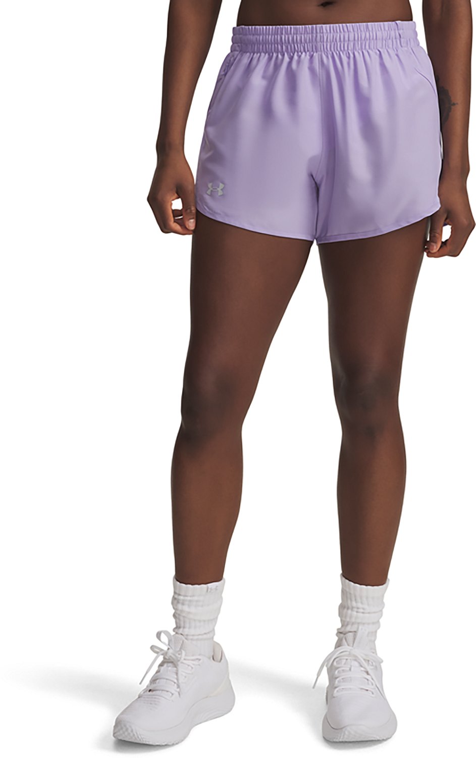 Run with speed wearing the Under Armour Women's Fly By Shorts. The 100% woven polyester construction offers a soft feel all day, and the mesh panels provide ventilation to keep you cool during the grind. The built-in briefs help keep you covered, and the mid rise waistband with drawstring ensures a secure fit.