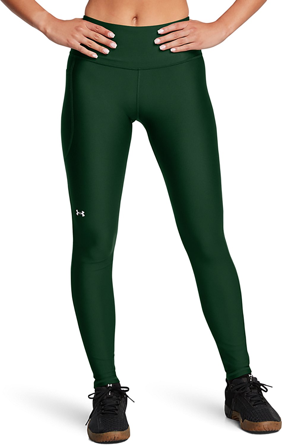 Work out in comfort with the Under Armour Women's HeatGear® Armour Hi-Rise Leggings. The leggings are made with HeatGear® fabric, which delivers ideal coverage without weighing you down. The moisture-wicking material helps keep you dry.