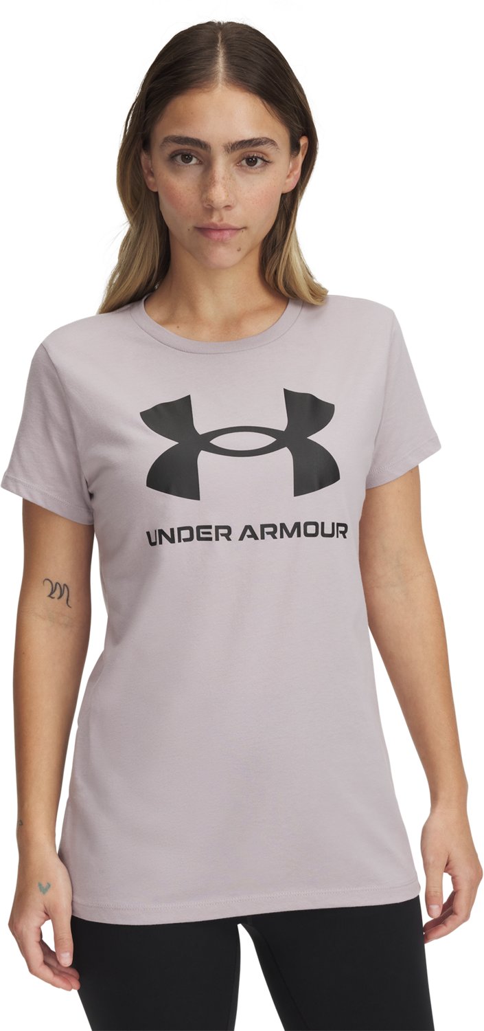 Show off your casual style in the Under Armour Women's Live Sportstyle Graphic Short Sleeve T-shirt. This T-shirt is made from 100% polyester UA Techâ„¢ fabric for an ultra-soft and natural feel. The material wicks sweat and dries fast to keep you cool, while the Under Armour graphic on the chest adds a stylish touch.