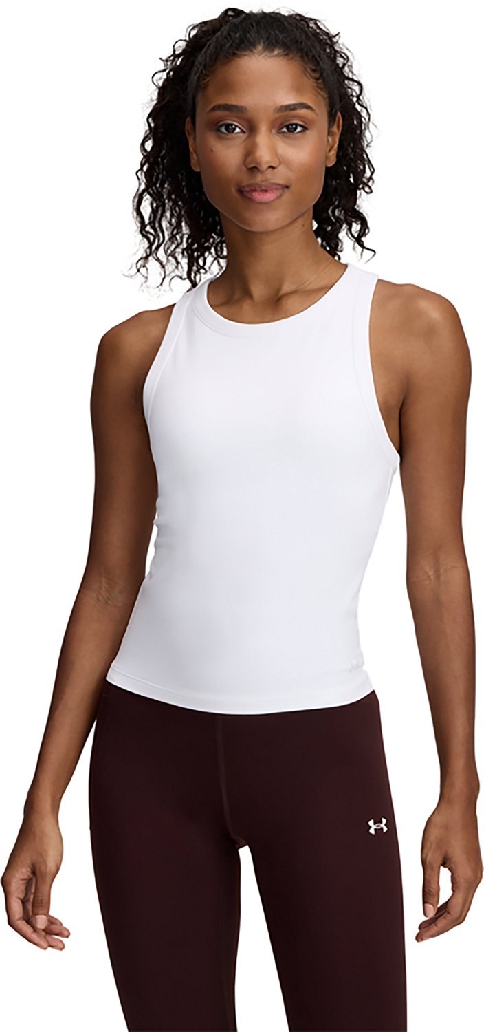 Work up a sweat in the Under Armour Women's Motion High Neck Tank Top. The polyester and elastane material provides a comfortable feel, while the 4-way stretch fabric promotes mobility. A built-in shelf bra offers coverage and support.