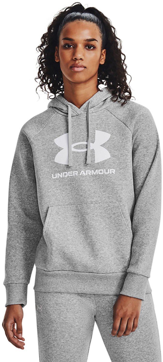 Layer up against the chill with the Under Armour Women's Rival Fleece Big Logo Hoodie. Brushed fleece fabric feels soft and warm against your skin. The kangaroo pocket keeps hands cozy, while the ribbed cuffs and hem provide a snug fit and elevated look.