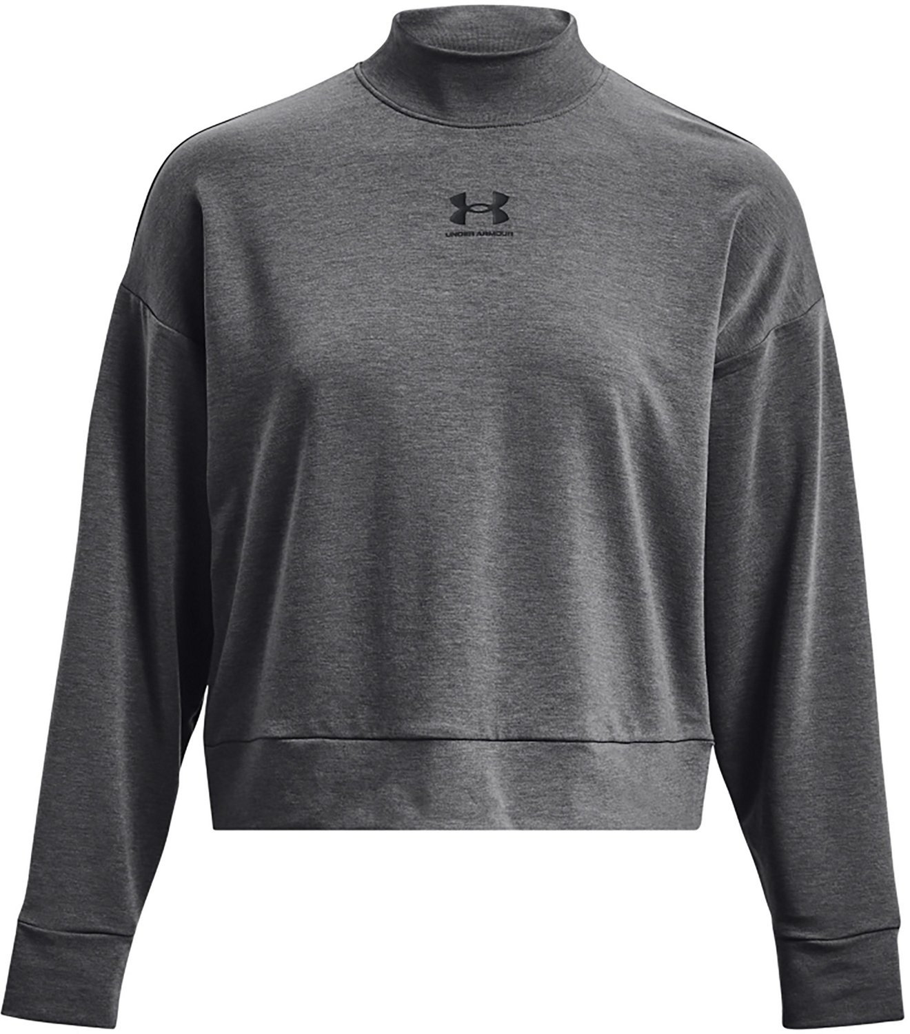 Stay comfy and warm in the Under Armour Women's Rival Terry Mock Crew Sweatshirt. Made from French Terry fabric, this sweatshirt feels super soft and lightweight. The fabric is also made with sweat-wicking, quick-drying ability to optimize comfort. The mock neck and simple UA logo on the chest deliver great style.