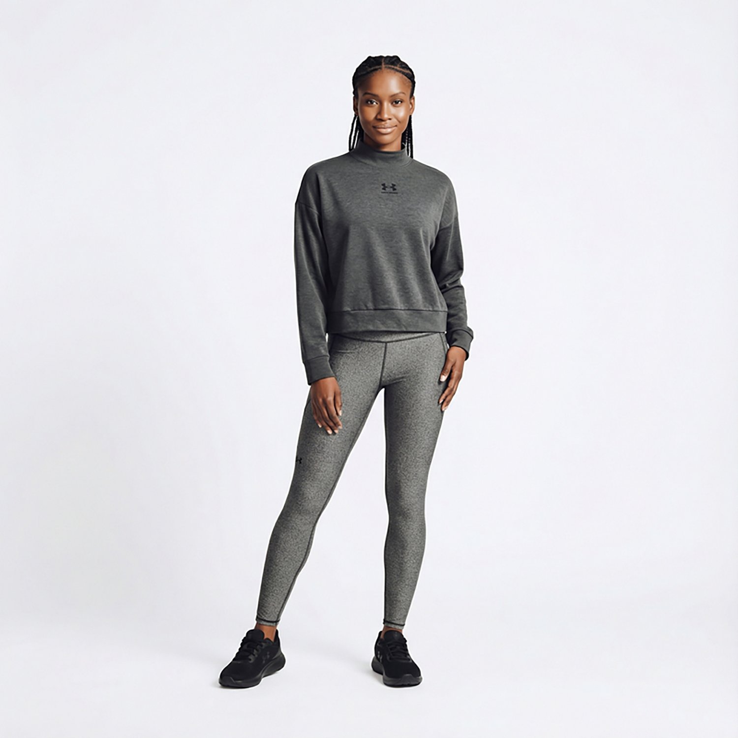 Stay comfy and warm in the Under Armour Women's Rival Terry Mock Crew Sweatshirt. Made from French Terry fabric, this sweatshirt feels super soft and lightweight. The fabric is also made with sweat-wicking, quick-drying ability to optimize comfort. The mock neck and simple UA logo on the chest deliver great style.