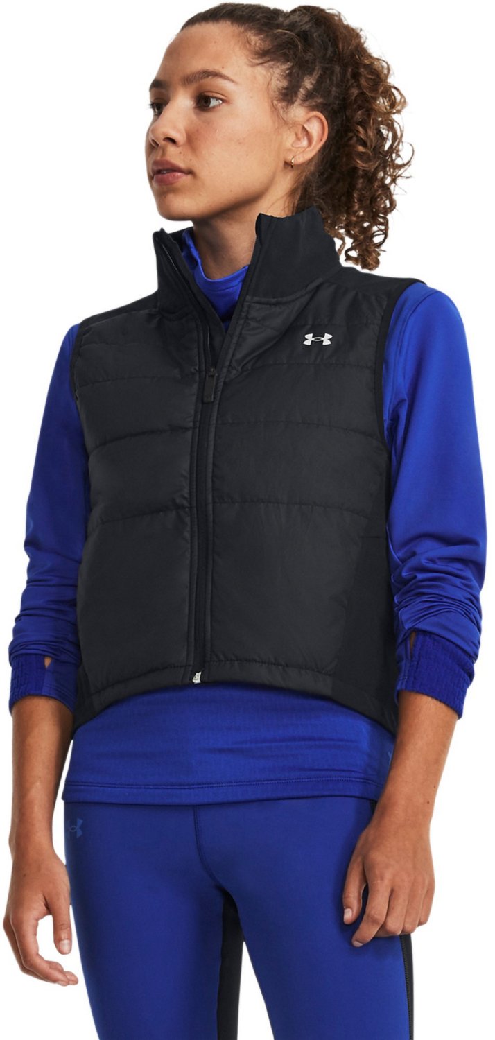 For added warmth without the bulk, wear the Under Armour Women's Storm Session Running Vest. This lightweight vest features synthetic insulation to help keep you warm on chilly outdoor runs, and it also boasts water-repellent technology to protect against rain. Reflective details throughout the vest help increase your visibility during dark and stormy conditions.