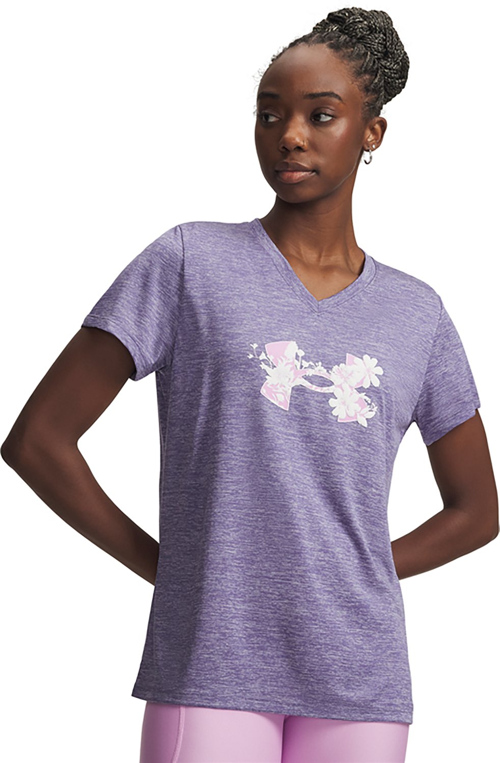 Keep it cool with the Under Armour Women's Tech Twist Graphic T-shirt. The polyester material provides a comfortable feel, while the moisture wicking technology helps keep you cool and dry. Built-in odor control technology reduces odor, and the graphic design adds a stylish touch.