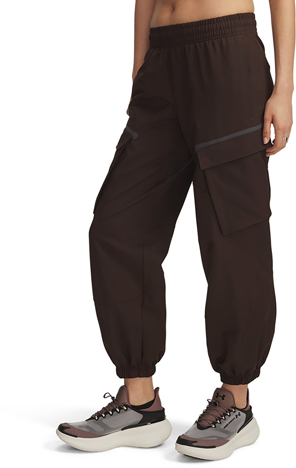 Look your best when you wear the Under Armour Women's Unstoppable Cargo Pants. They are made of 90% polyester and 10% elastane. The UA Storm technology repels water without sacrificing breathability, and their stretch-woven fabric is lightweight, durable, and moves with you. The high-rise encased elastic waistband with an internal drawcord creates an adjustable fit.