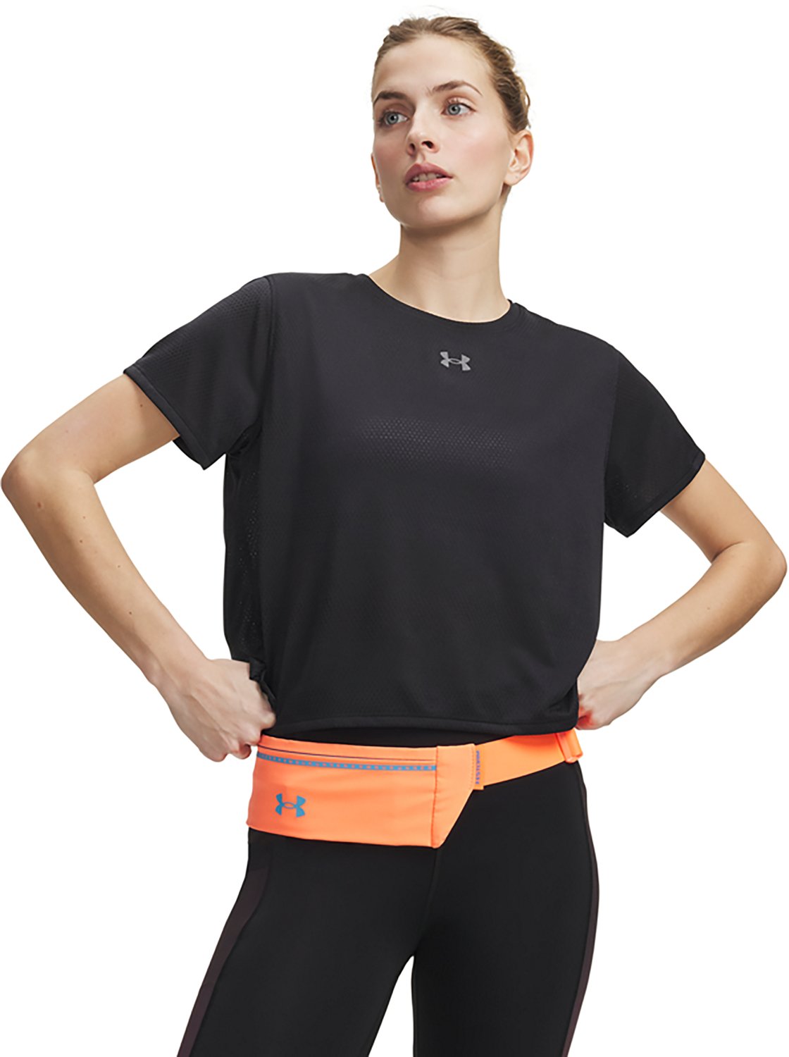 Go for a run when you wear the Under Armour Women's Velociti T-shirt. The polyester material provides a comfortable feel, while the moisture wicking technology helps keep you cool and dry. Built-in 4-way stretch technology promotes mobility, and the odor control technology helps reduce odor.