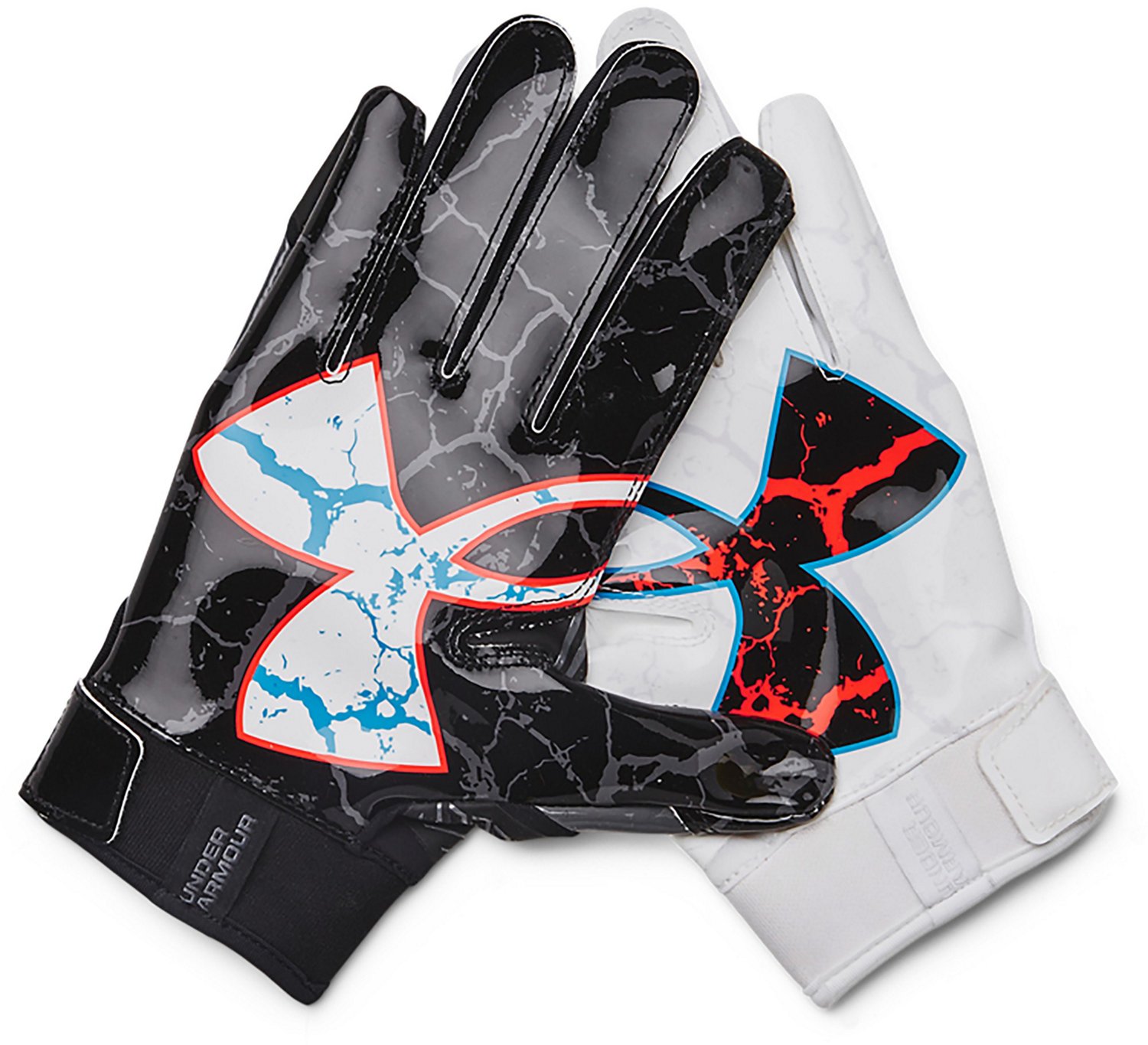 Haul in every pass thrown your way with the Under Armour Youth F9 Nitro Football Gloves. The silicone and nylon material provides a comfortable feel, while the Textured TurfGear technology offers breathability. The silicone print overlays provide support, structure and mobility, and the UA GlueGrip technology delivers consistent tack.