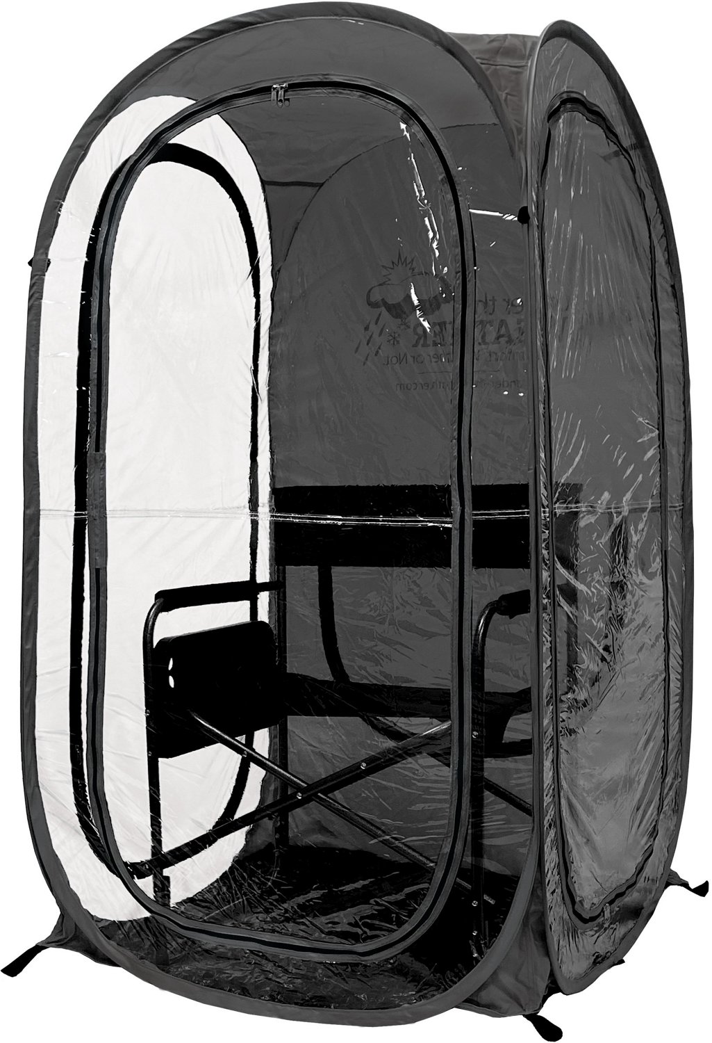 Watch sports games in the rain, set up a lemonade stand, keep warm while stargazing, and more with the Under The Weather WeatherPod MyPod 1-Person Pop Up Tent. Made from transparent PVC plastic, this tent is large enough to completely enclose an adult and camp chair while providing a panoramic view. The modular design connects to other MyPod tents to seat larger parties.
