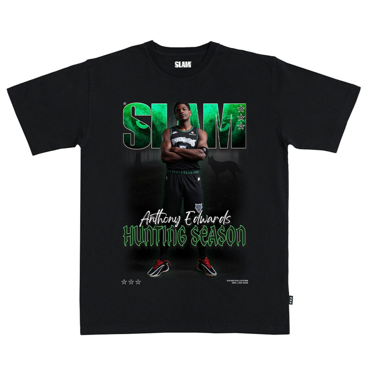 Celebrate the meteoric rise of Anthony Edwards with this SLAM Cover T-Shirt "Ant-Man" has quickly become one of the most electrifying players in the NBA leading the Minnesota Timberwolves to new heights with his explosive athleticism and clutch performances This tee captures Edwards' swagger and star power depicting him on the cover of SLAM magazine a testament to his impact on the game Show your support for the future of the NBA and rep one of the league's brightest stars with this bold and stylish tee