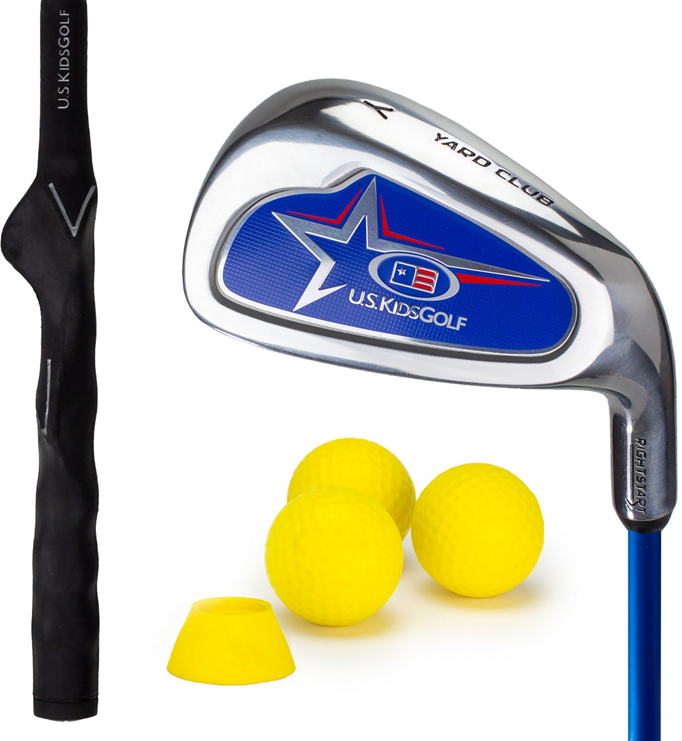 Learn to golf with the U.S. Kids Golf 2022 Yard Club. The lightweight Y-flex composite shaft and molded training grip create proper hand positioning and a natural swing, while the oversized head allows for easier hitting.