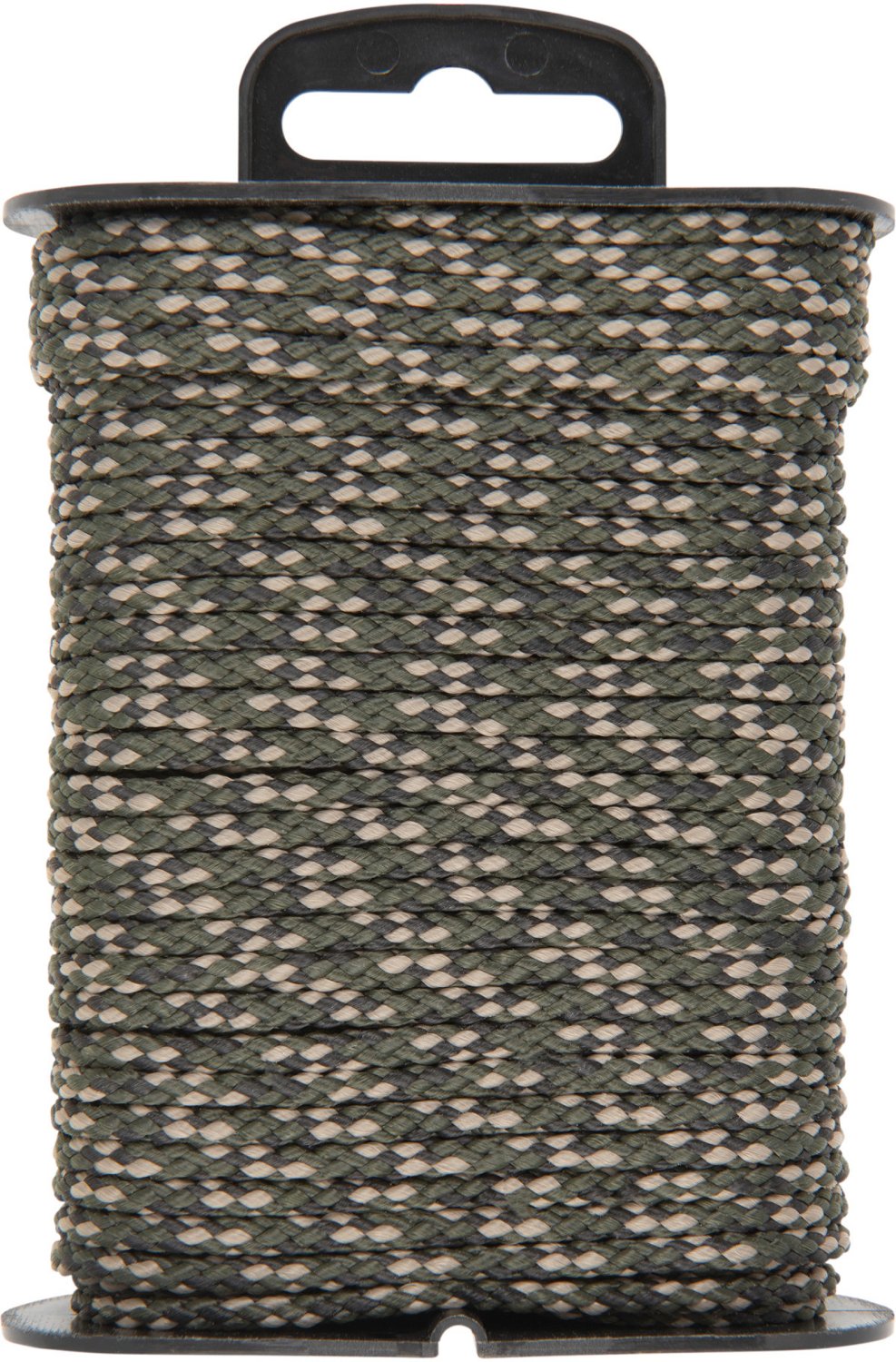 Add a versatile and lightweight rope to your hunting pack with the Vanish All-Around 50 ft Outdoor Cord. This all-around cord easily fits inside your backpack for convenience. This rope measures 1/8 inches in diameter and is braided for extra strength. With a working load of 24 pounds and a breaking load of 240 pounds, this rope can handle all of your hunting and outdoor needs, from tent set up to fishing repairs.