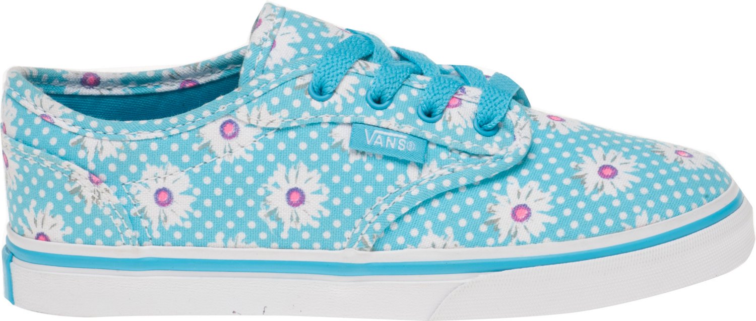 The Vans Girls' Attwood Low Shoes feature a great look to show off her casual style. These athletic lifestyle shoes are made with canvas uppers for durability and vulcanized rubber outsoles that provide long-lasting wear. Die-cut EVA midsoles and foam insoles ensure all-day cushioning comfort. Lace closures. Woven textile linings. Low-cut design.