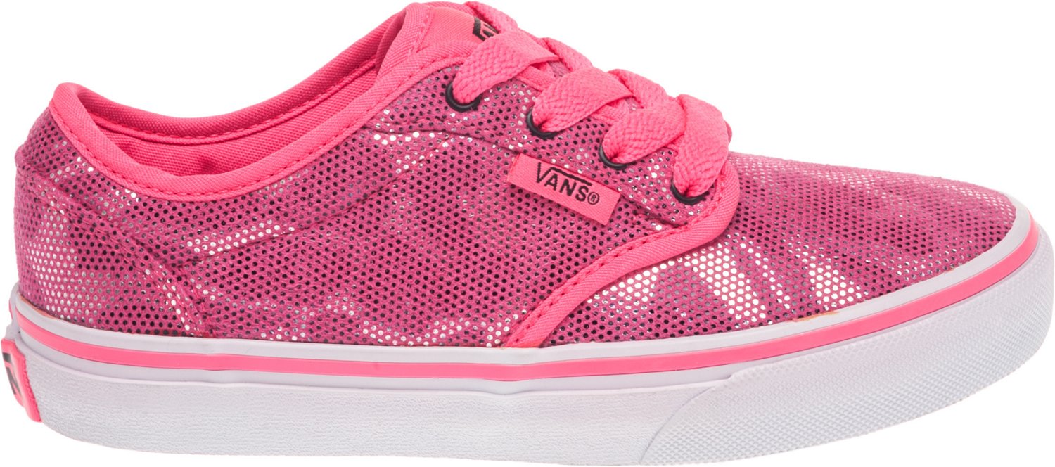 She'll love the cool style of the Vans Girls' Atwood Skate Shoes, which feature vulcanized rubber outsoles for durability and traction. The die-cut EVA midsoles and foam insoles offer cushioning and support, while textile uppers and linings and padded collars and tongues for comfortable wear. Lace closures.