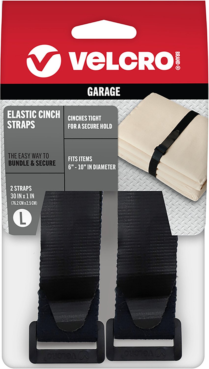 If you need to secure a hose, power cords or camping equipment, turn to the VELCRO Elastic 30 in x 1 in Cinch Straps 2-Pack. These straps are made of all-purpose elastic to flex and stretch as needed, and they even conform to the shape on whatever item they are being used to secure.