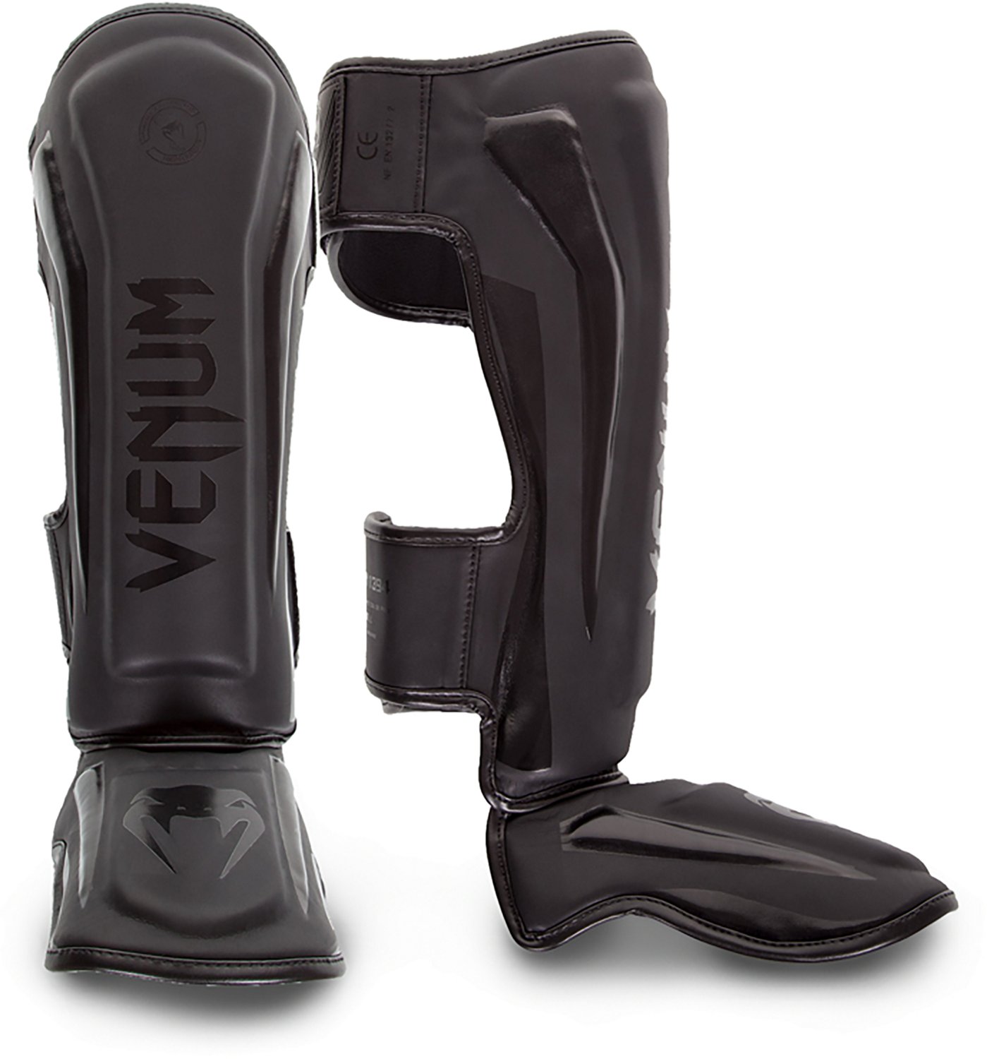 Protect your legs with the Venum Elite Shin Guards. Their premium semi leather construction enhances durability. The high density foam with additional padding on the shinbone and instep offers enhanced shock absorption, and their lightweight design provides unrestricted mobility and speed. The large hook-and-loop straps create a no-slip fit.
