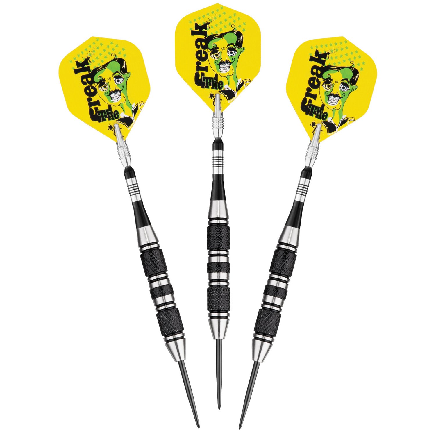 Show off your dart skills with the Viper Freak 22-Gram Steel-Tip Darts Set. The darts feature ergonomically designed nickel-silver barrels with knurling and scalloped grooves for confident tosses and rotating Spinster shafts to minimize dart deflection. Includes 2 sets of flights and a slide storage case.