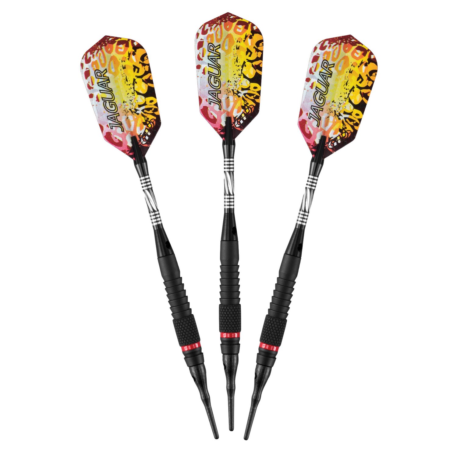 Designed with animal print graphics for a wild look, the Viper Jaguar 18-Gram Soft-Tip Darts Set includes darts with slim, diamond-cut tungsten barrels, knurled rings and a nonslip coating for a firm hold. 2BA tips. Comes with 2 sets of flights and the Viper Knight case.